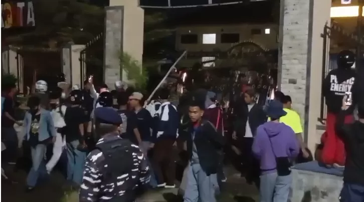 Suasana semakin memanas saat massa gagal menerobos Mapolres dan kemudian beralih menyerang Gedung DPRD.