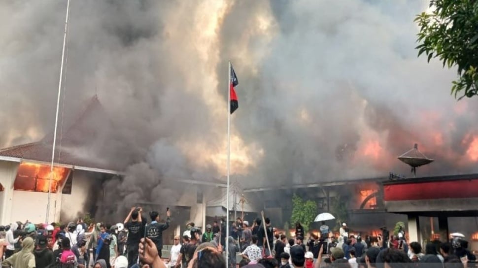 Kondisinya semakin memburuk saat massa merangsek masuk dan melakukan perusakan—membakar pos jaga, ruang rapat DPRD, hingga fasilitas lainnya.