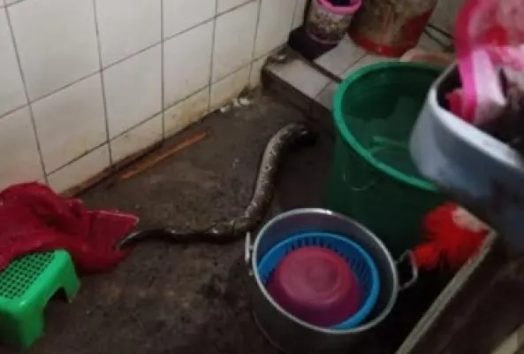 Ular yang terkejut kemudian menyusup lebih dalam ke dalam sistem pembuangan.