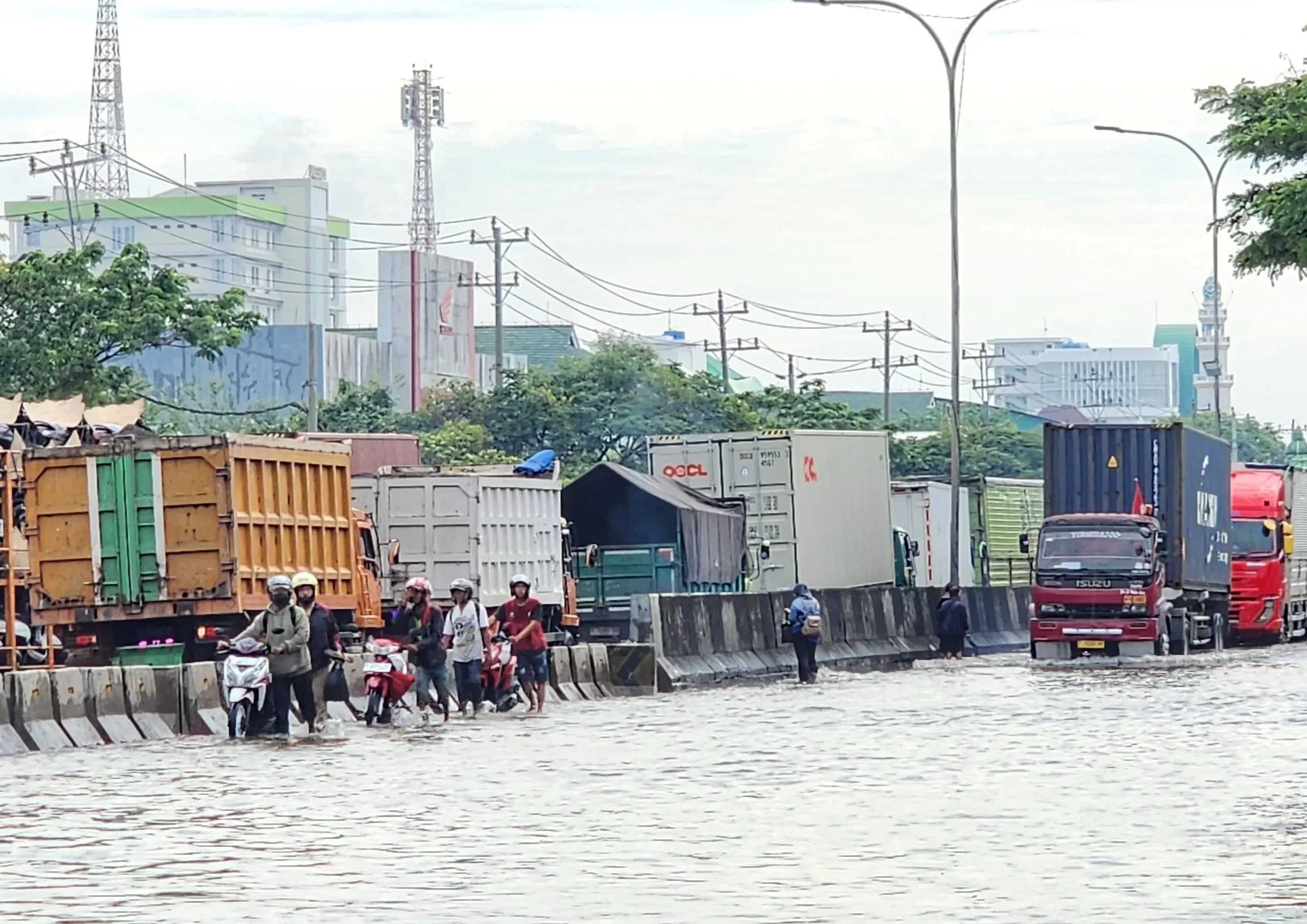 Kondisi ini memperlambat proses penyusutan genangan yang mencapai ketinggian 30–40 cm di beberapa ruas.