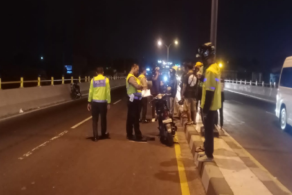 Warga bernama Asih menyebutkan bahwa motor tersebut berada di lajur kanan ketika jatuh dan menabrak pembatas jalan.