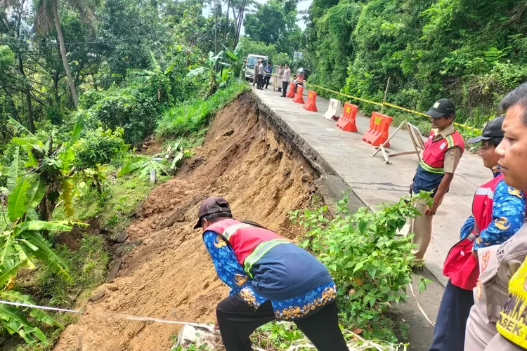 Petugas gabungan pun berjaga di lokasi untuk memastikan keselamatan pengguna jalan dan memantau pergerakan tanah di sekitar area terdampak.