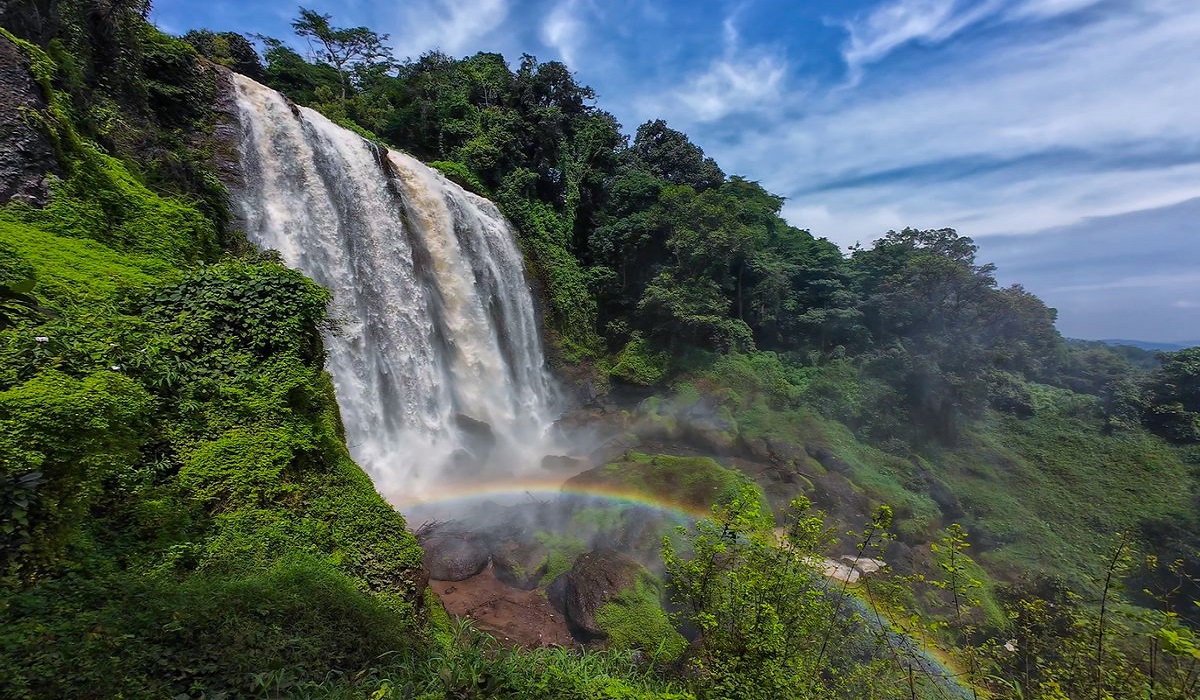 Perpaduan antara derasnya air terjun yang menjulang tinggi dan asrinya alam sekitar menciptakan panorama indah bagi setiap pengunjung.