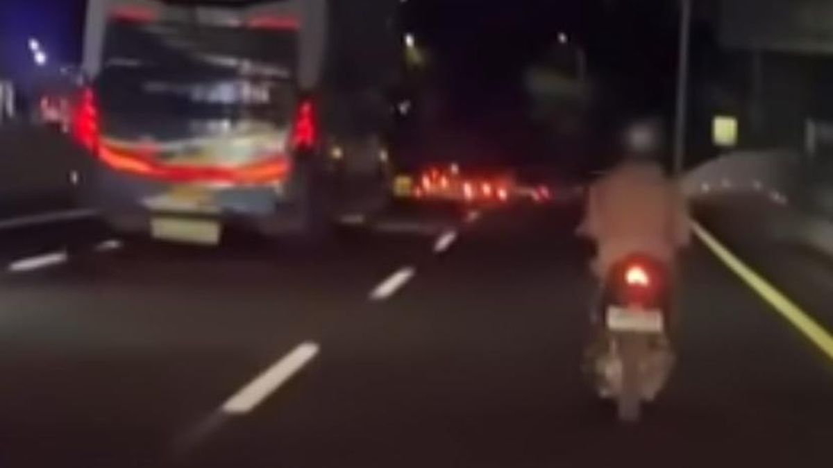 Dari tayangan tersebut, kedua kendaraan roda dua tampak bergerak menuju jalur masuk tol yang peruntukannya hanya untuk mobil dan truk.